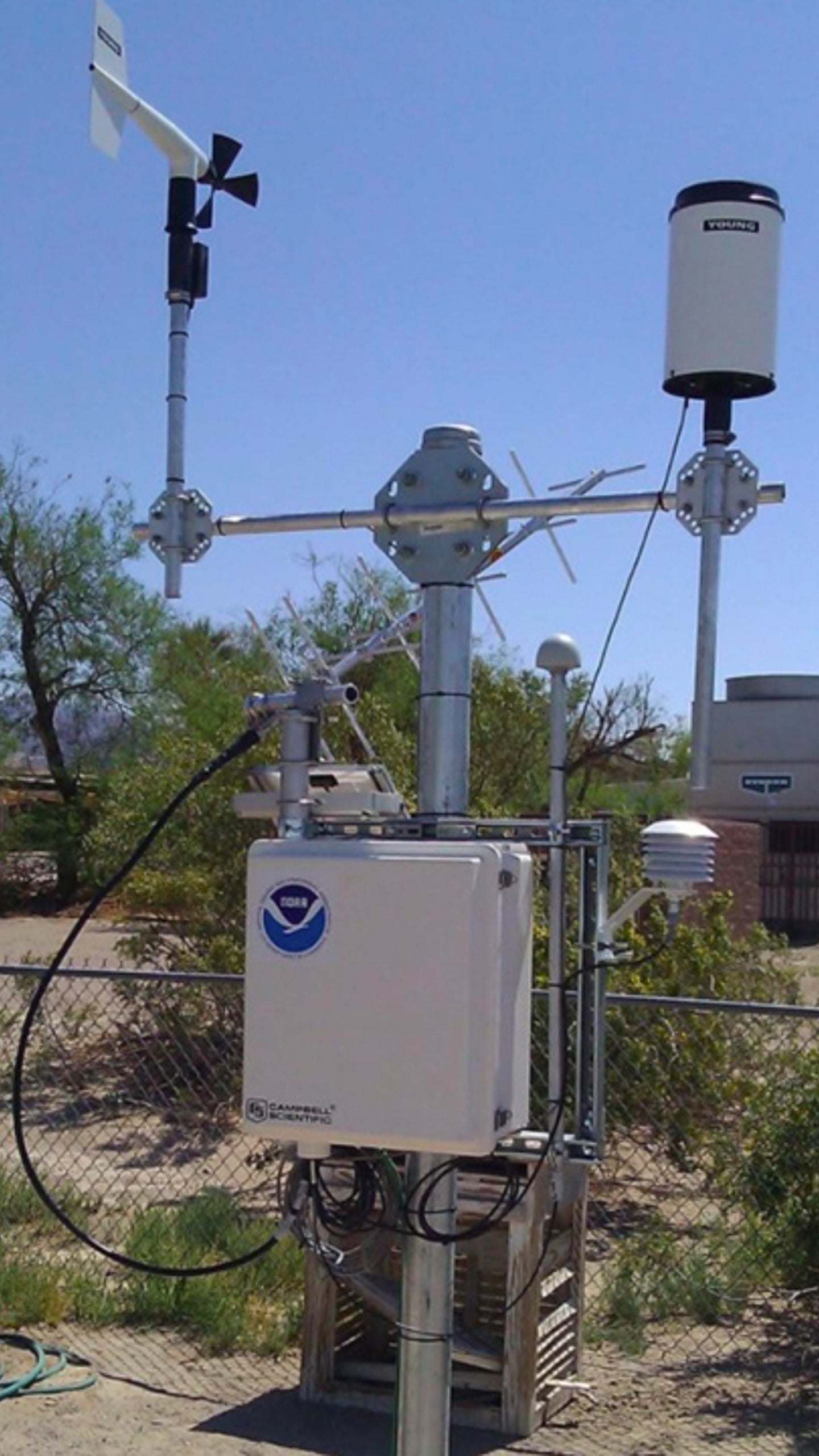 The white box houses the fan-aspirated temperature sensor.